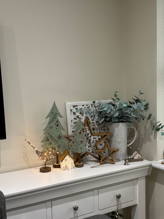 Pale Green Felt Christmas Tree with Gold Star and bells