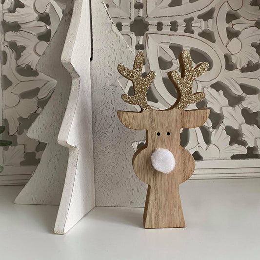 Gracie - Wooden reindeer with gold glitter antlers
