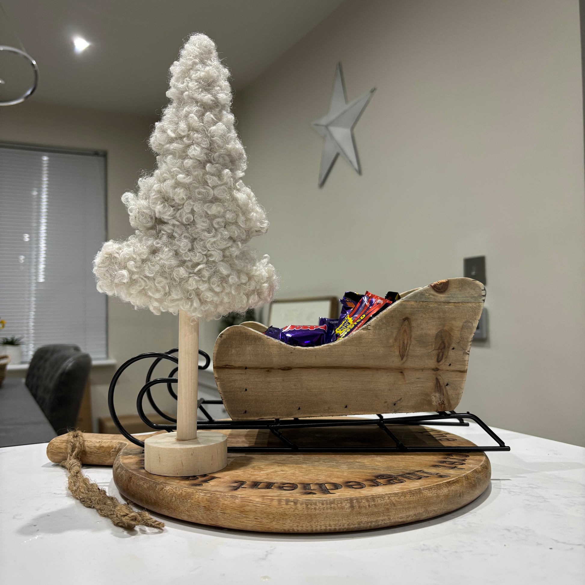 Bring soft, cozy charm to your holiday décor with this elegant Faux Fur Christmas Tree. Featuring a plush cream-colored faux fur tree set on a sturdy natural wood base, this decorative piece adds warmth and texture to mantels, shelves, entryways, and tabletops.