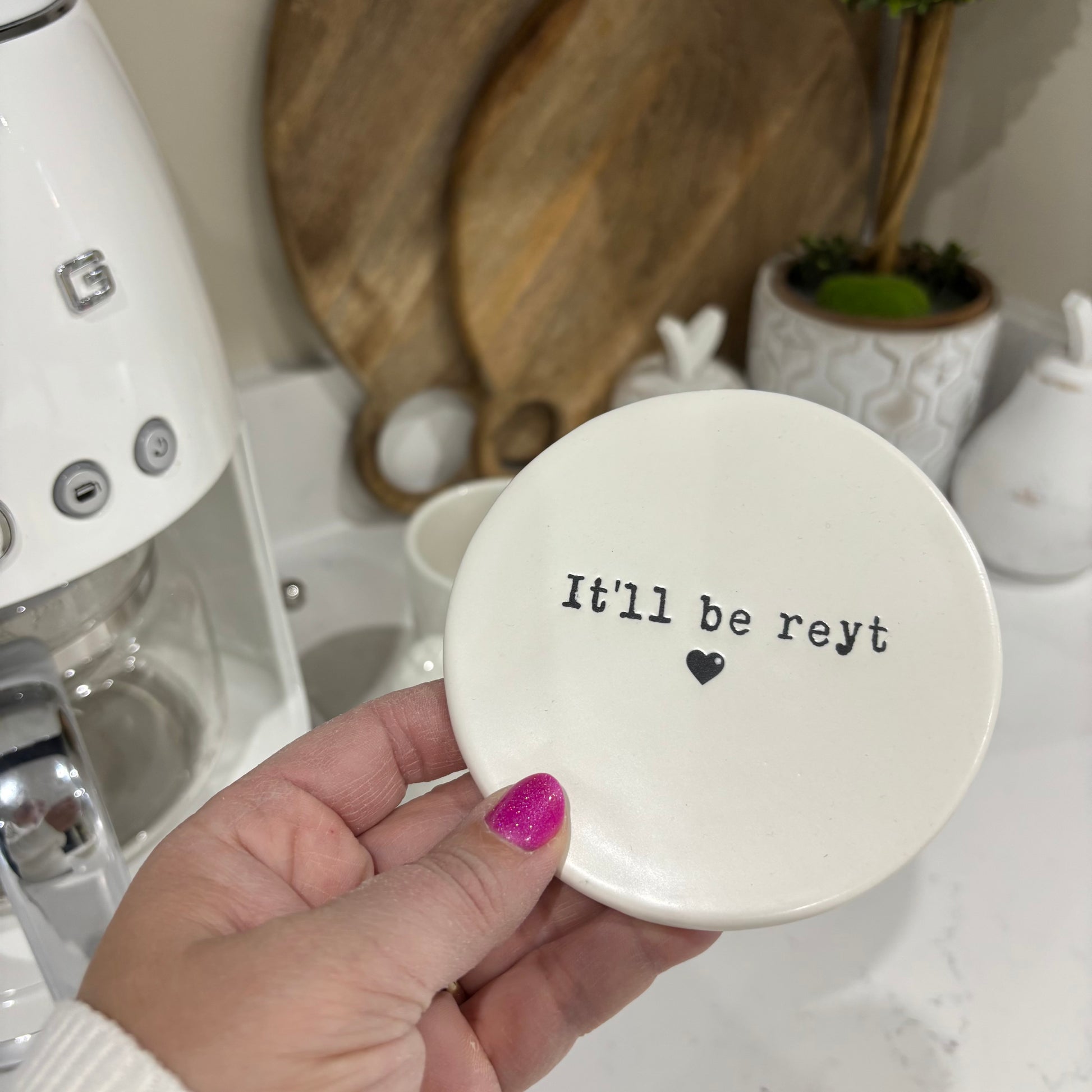 Add a touch of charm and humor to your home with this fine quality porcelain coaster, featuring a witty embossed slogan It'll be reyt.. that’s sure to make guests smile. Perfect for protecting your tabletops in style, it’s a thoughtful gift idea for birthdays, housewarmings, or any special occasion.