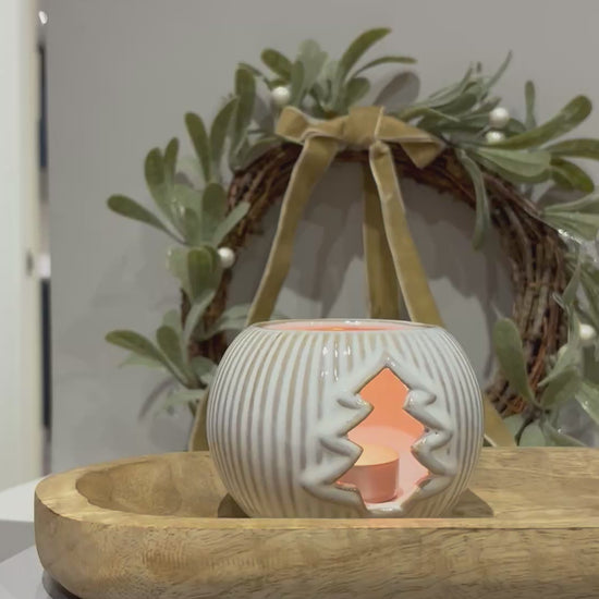Add a touch of festive charm with this simple tea light holder, finished in a neutral tone with a beautiful reactive glaze.
