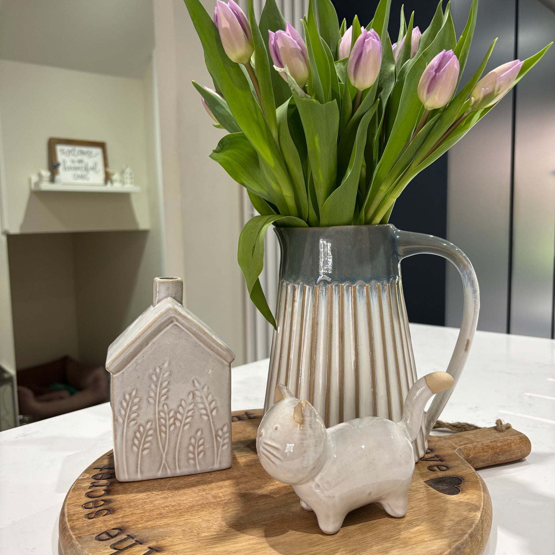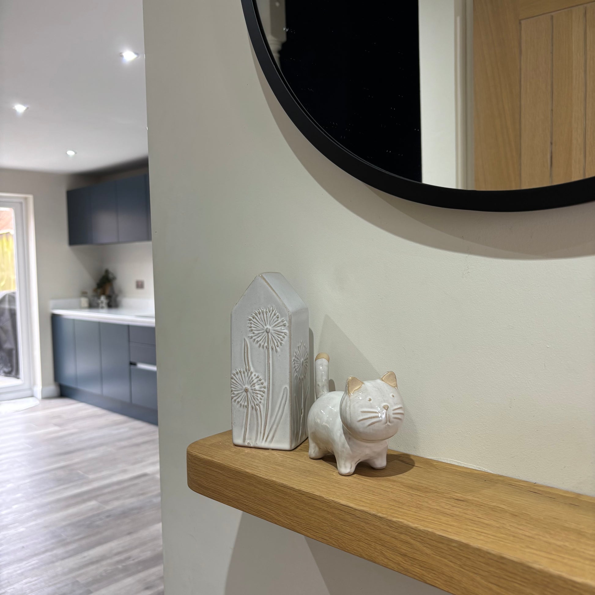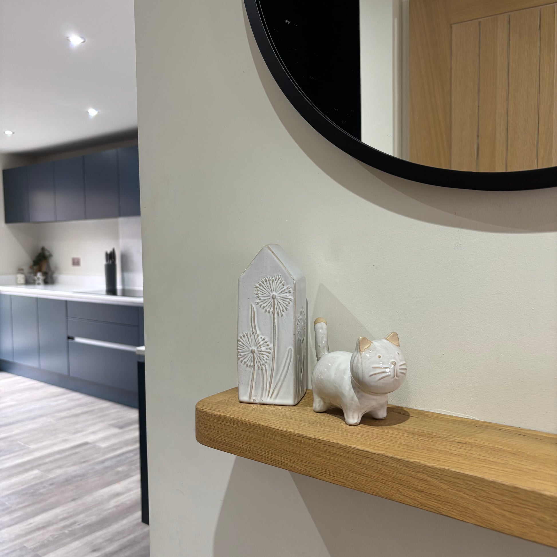 A cute and simple cat ornament in white finished with a simple glaze.