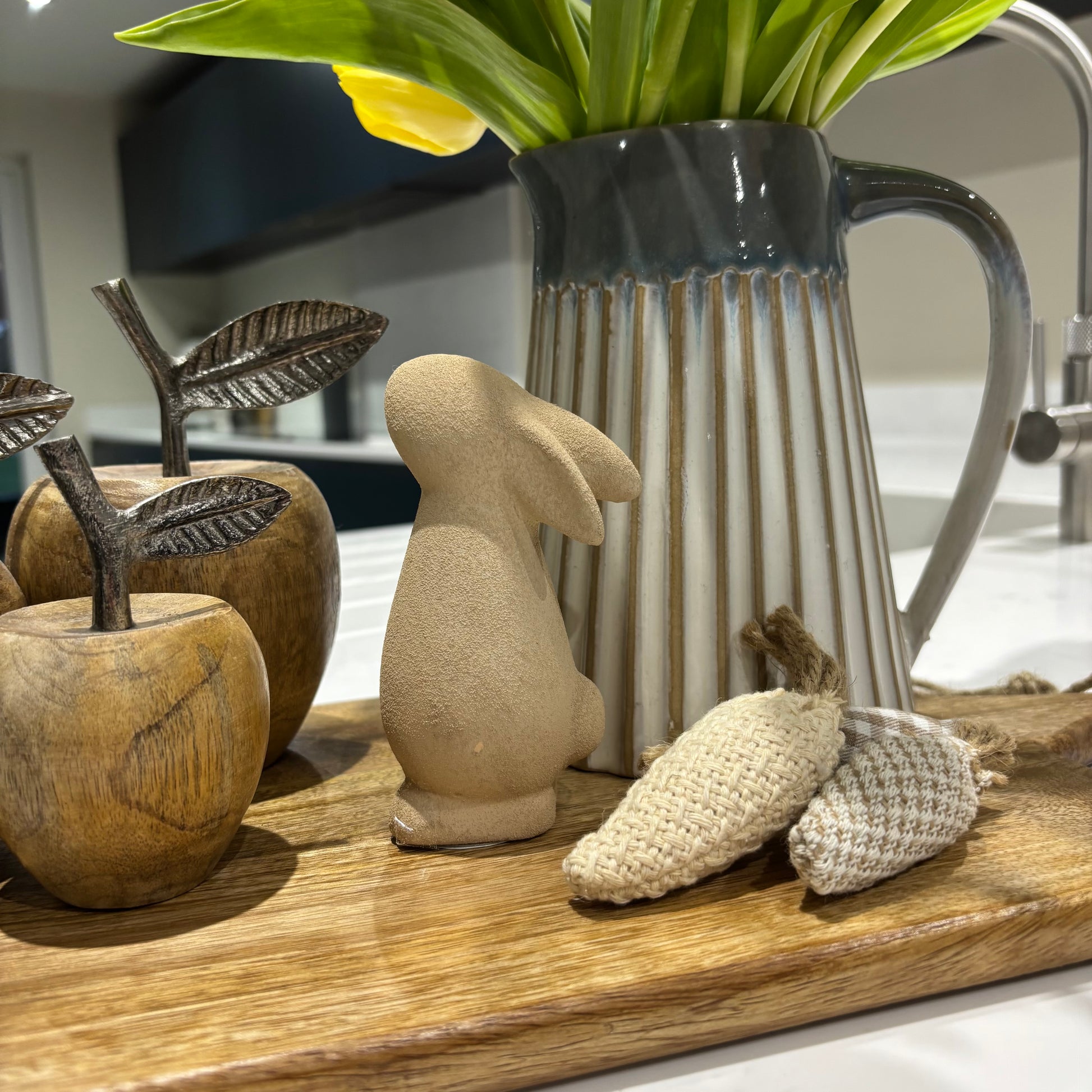 Available in four beautiful shades—brown, beige, cream, and grey—these bunnies are sold individually, allowing you to mix and match to suit your décor style. Their handcrafted aesthetic adds warmth and character to Easter décor, spring styling, or year-round whimsical home accents.
