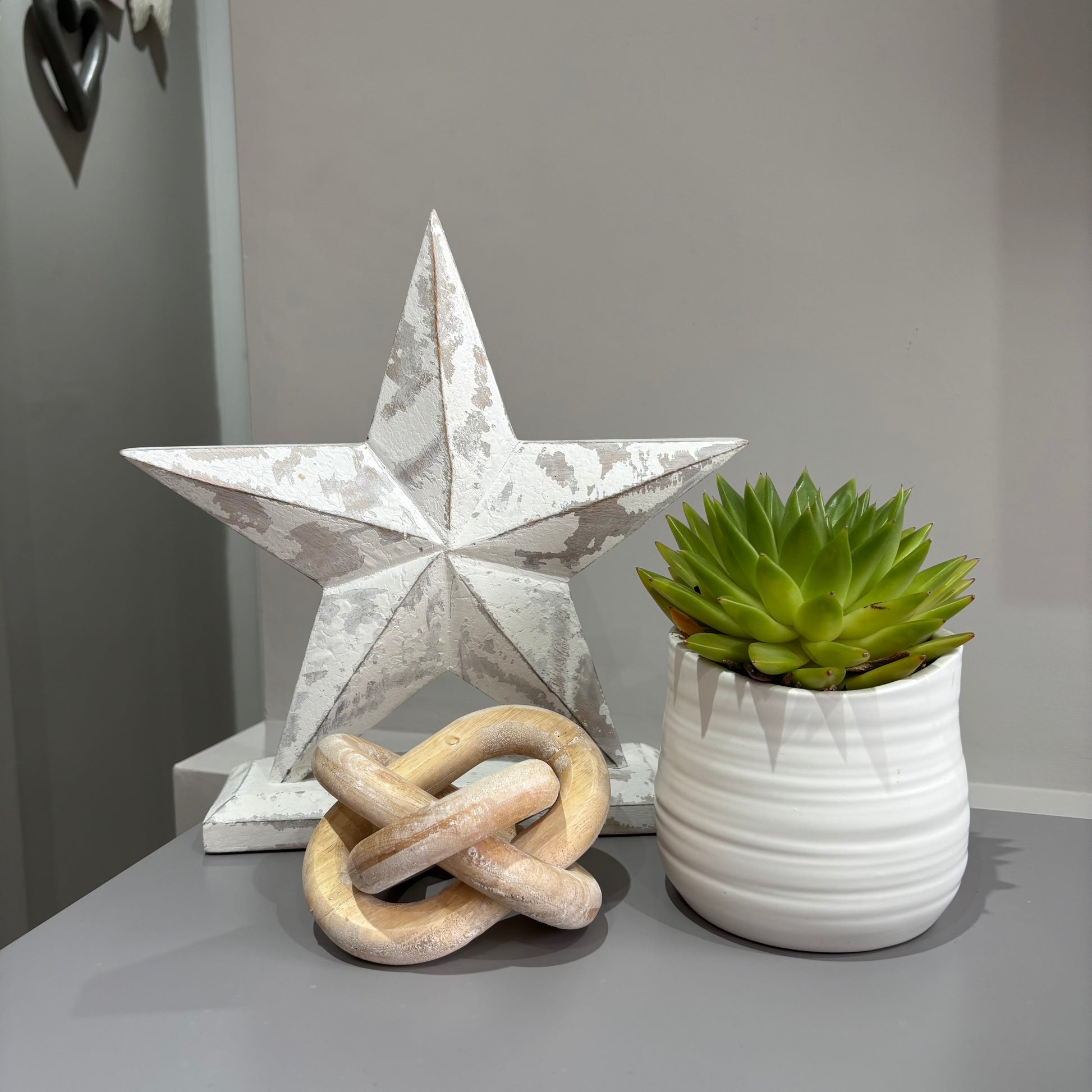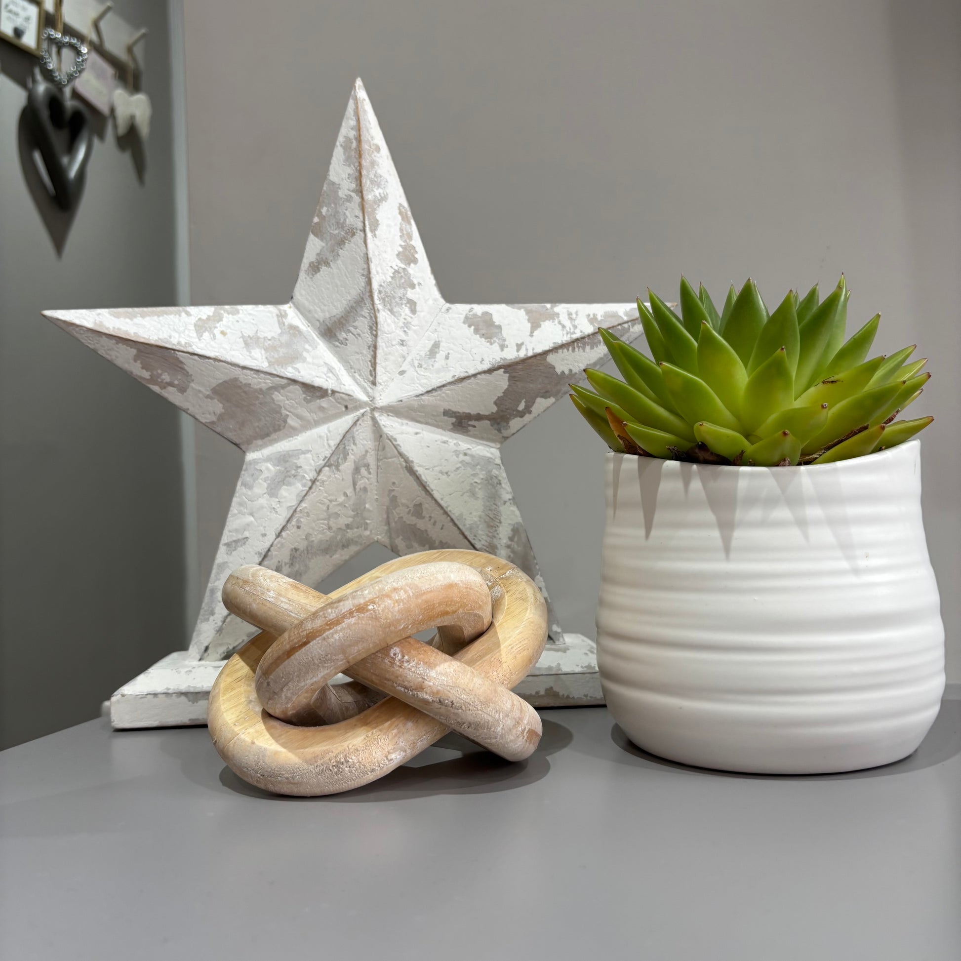 Subtly rustic whitewashed wooden knot decoration, a lovely styling piece for your home. Whether you place on a stack of decorative coffee table books, or style on your shelves or sideboard. The natural tones of the wood add an element of texture to your home.